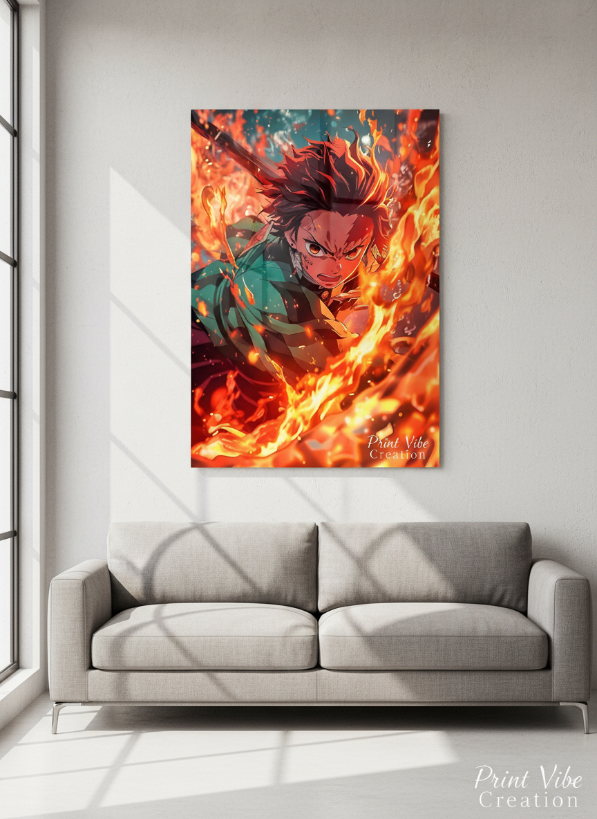 Bring unstoppable energy and anime intensity to your space with this high-definition metal poster inspired by Tanjiro Kamado in an epic flame battle pose. The vivid fire effects, powerful expression, and dynamic motion make this artwork a true eye-catcher.
