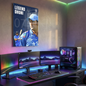 Celebrate the mindset of consistency and calm mastery with this powerful quote poster featuring MS Dhoni. Set against a bold black backdrop with Dhoni’s focused profile in India blue, this design captures the essence of discipline, repetition, and results—perfect for spaces that demand motivation and clarity.