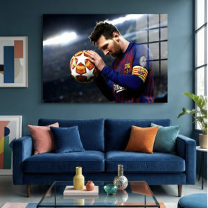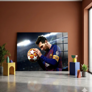 Celebrate football greatness with this breathtaking Lionel Messi Champions League Metal Poster, capturing a moment of pure focus before magic happens. A symbol of skill, humility, and legendary brilliance — perfect for true football fans.