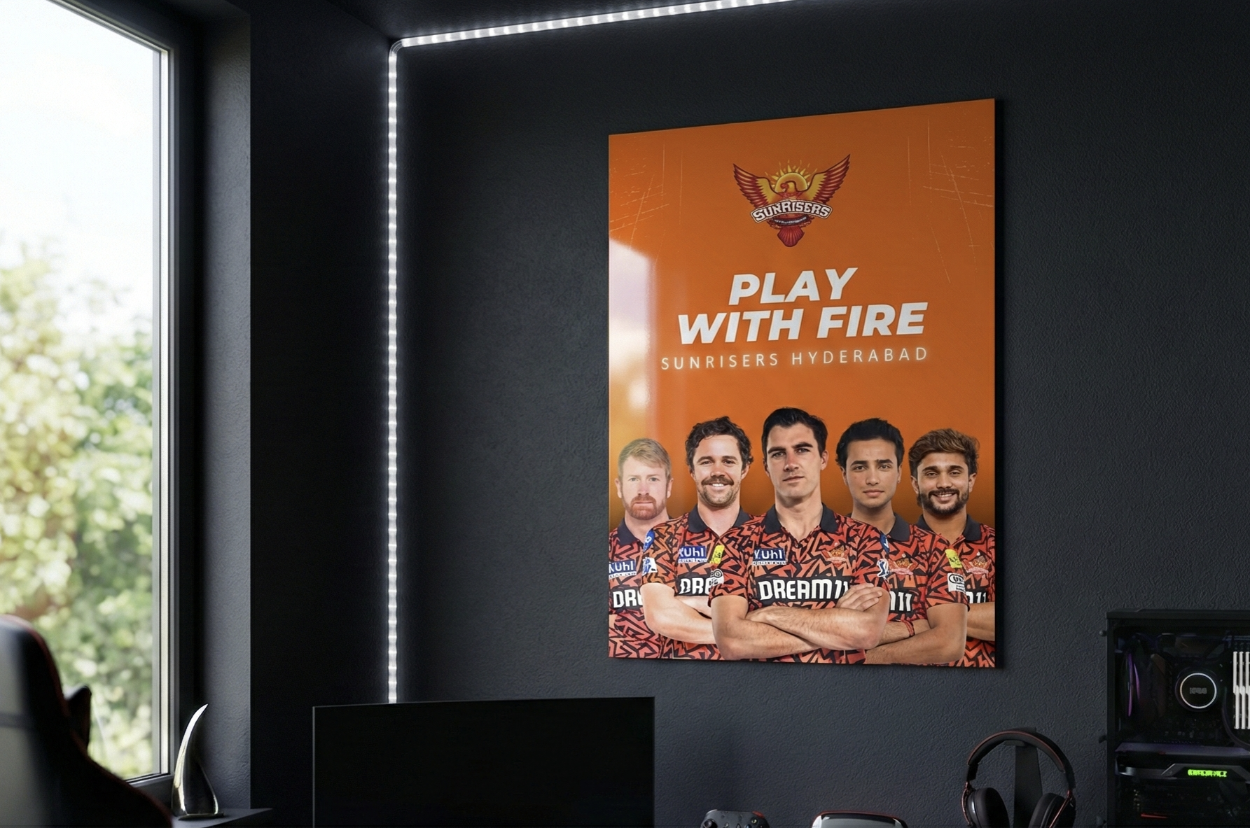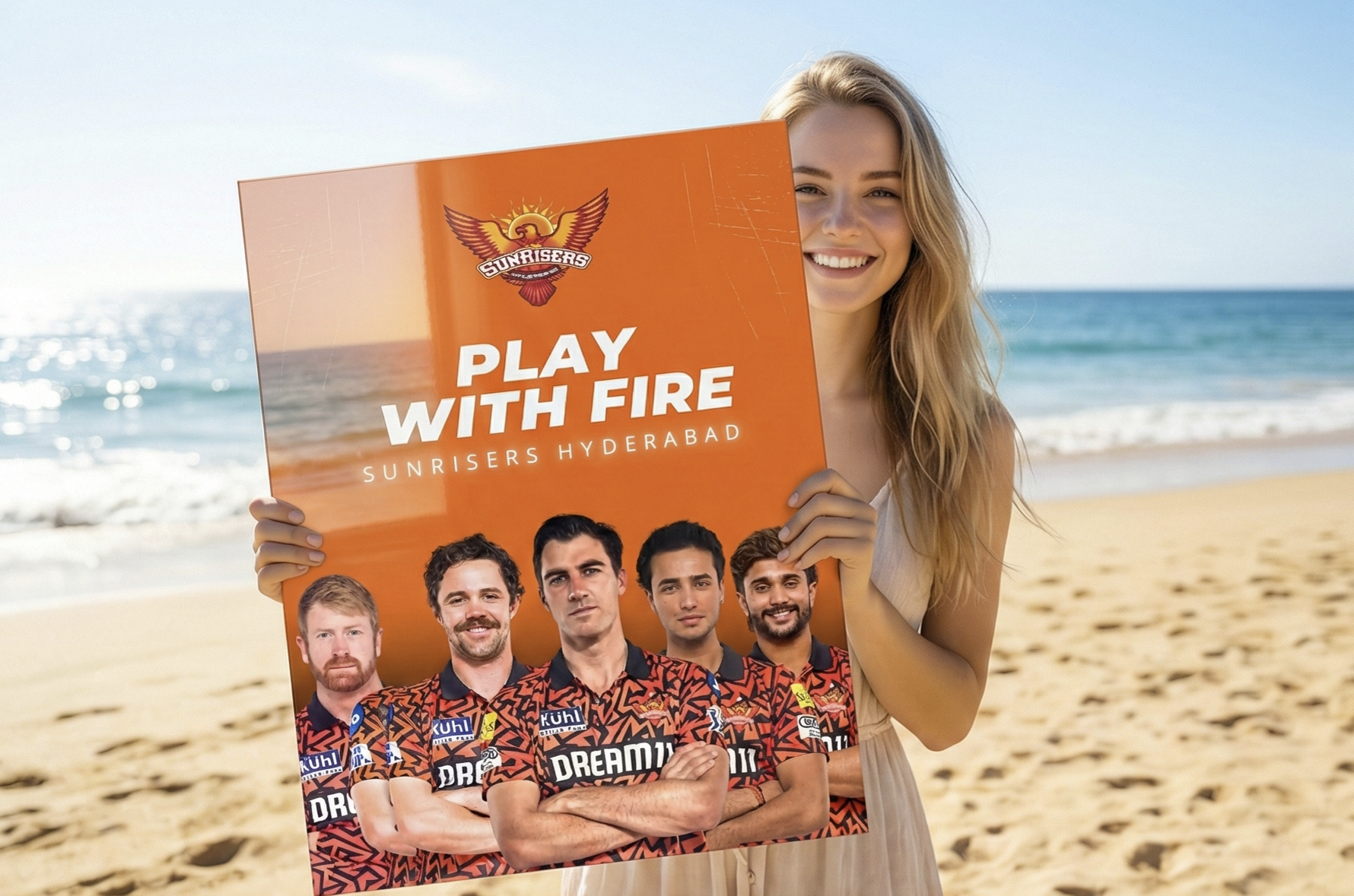 Showcases the Sunrisers’ fearless lineup with powerful symmetry and a bold central composition. -