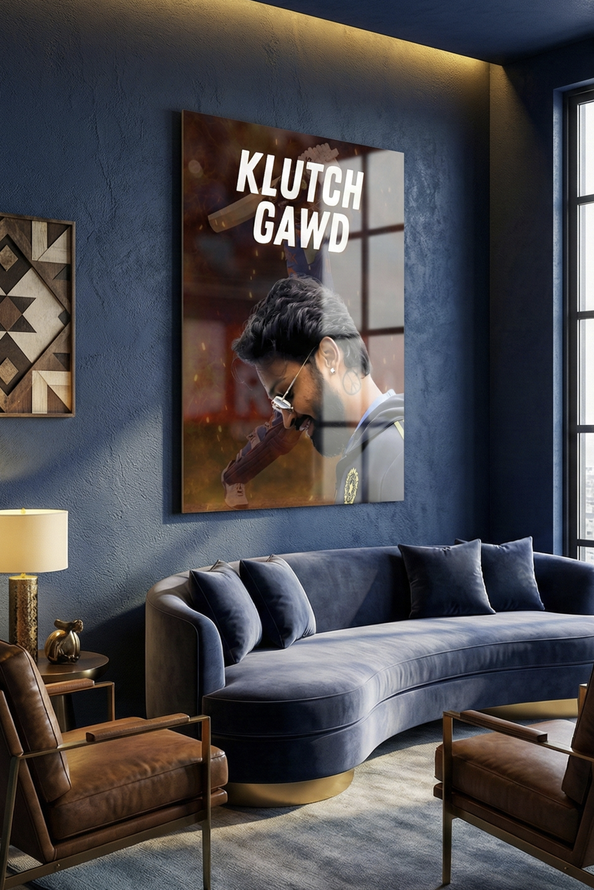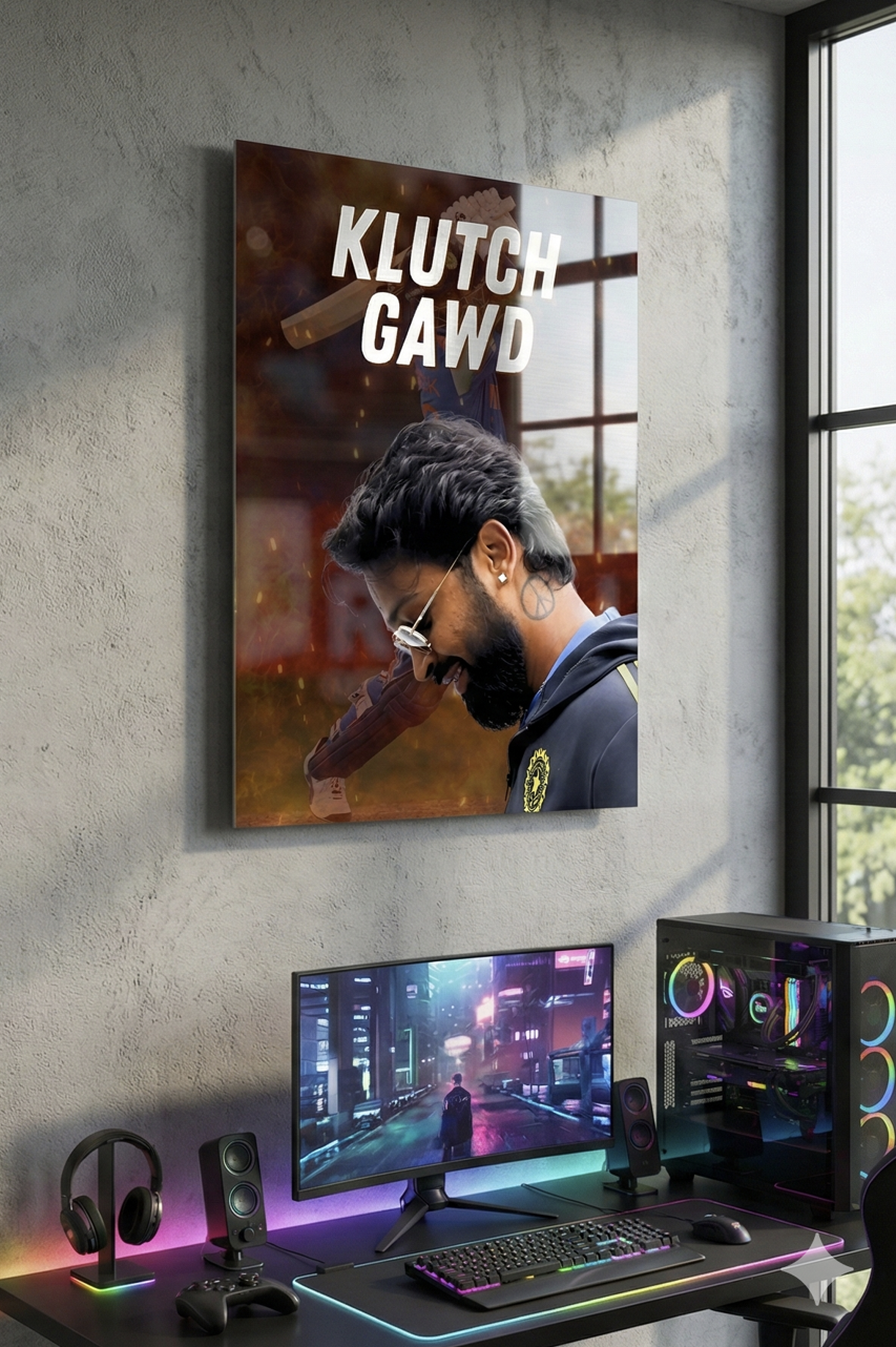 Command attention with the fearless aura of “Klutch Gawd”, a striking metal poster celebrating clutch moments and ice-cold confidence of Hardik Pandya. This powerful artwork captures intensity, swagger, and match-winning mentality—perfect for true cricket fans who live for pressure moments.