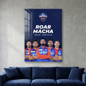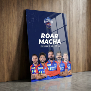 Celebrate the fearless spirit and rising dominance of Delhi Capitals with this bold “Roar Macha” metal poster. Featuring the full-strength squad in iconic blue and red tones, this artwork captures aggression, unity, and the hunger to conquer.