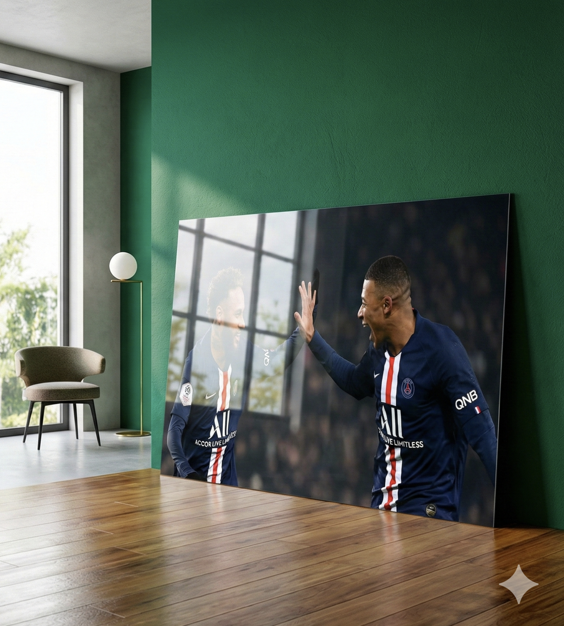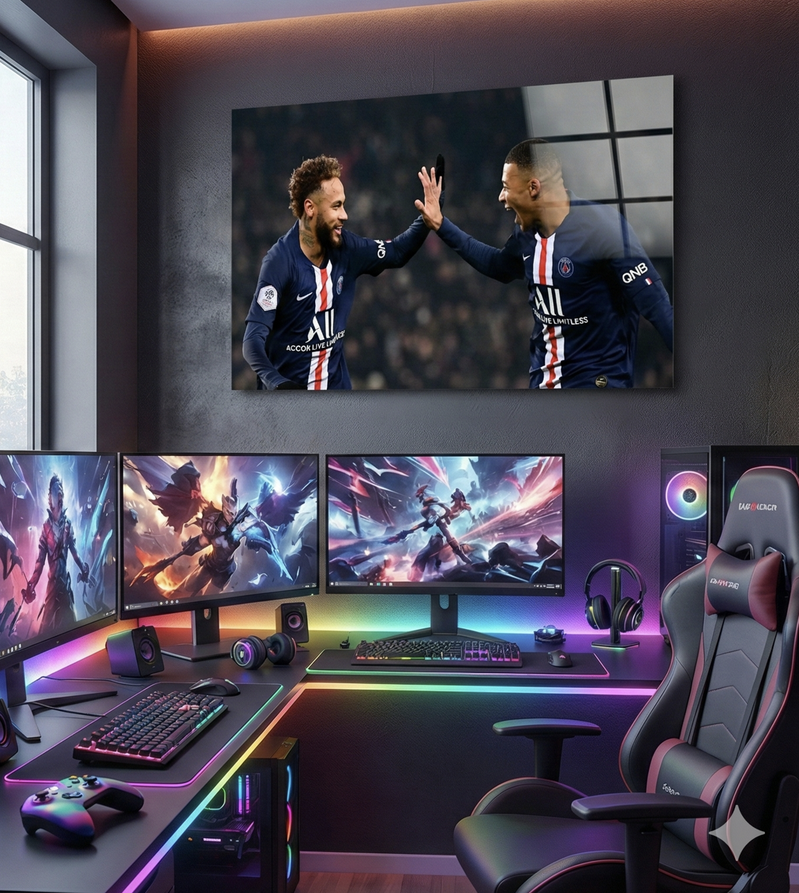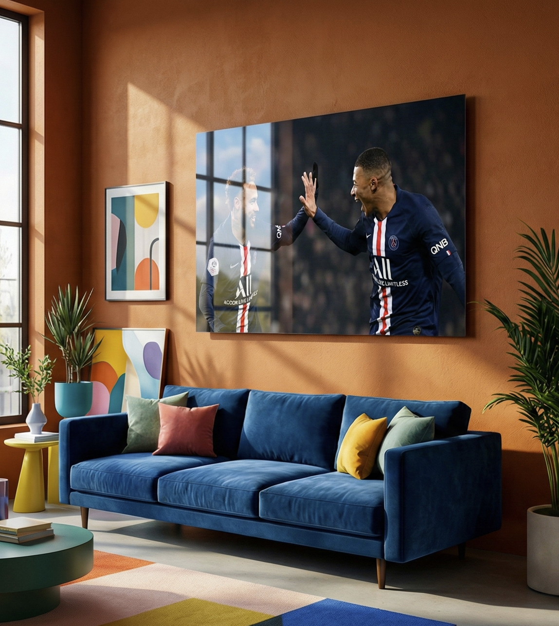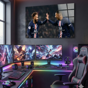 Celebrate one of football’s most electrifying partnerships with this stunning Neymar Jr & Kylian Mbappé Dynamic Duo Metal Poster. Capturing a powerful moment of teamwork and celebration, this artwork brings speed, skill, and superstar energy straight to your wall.