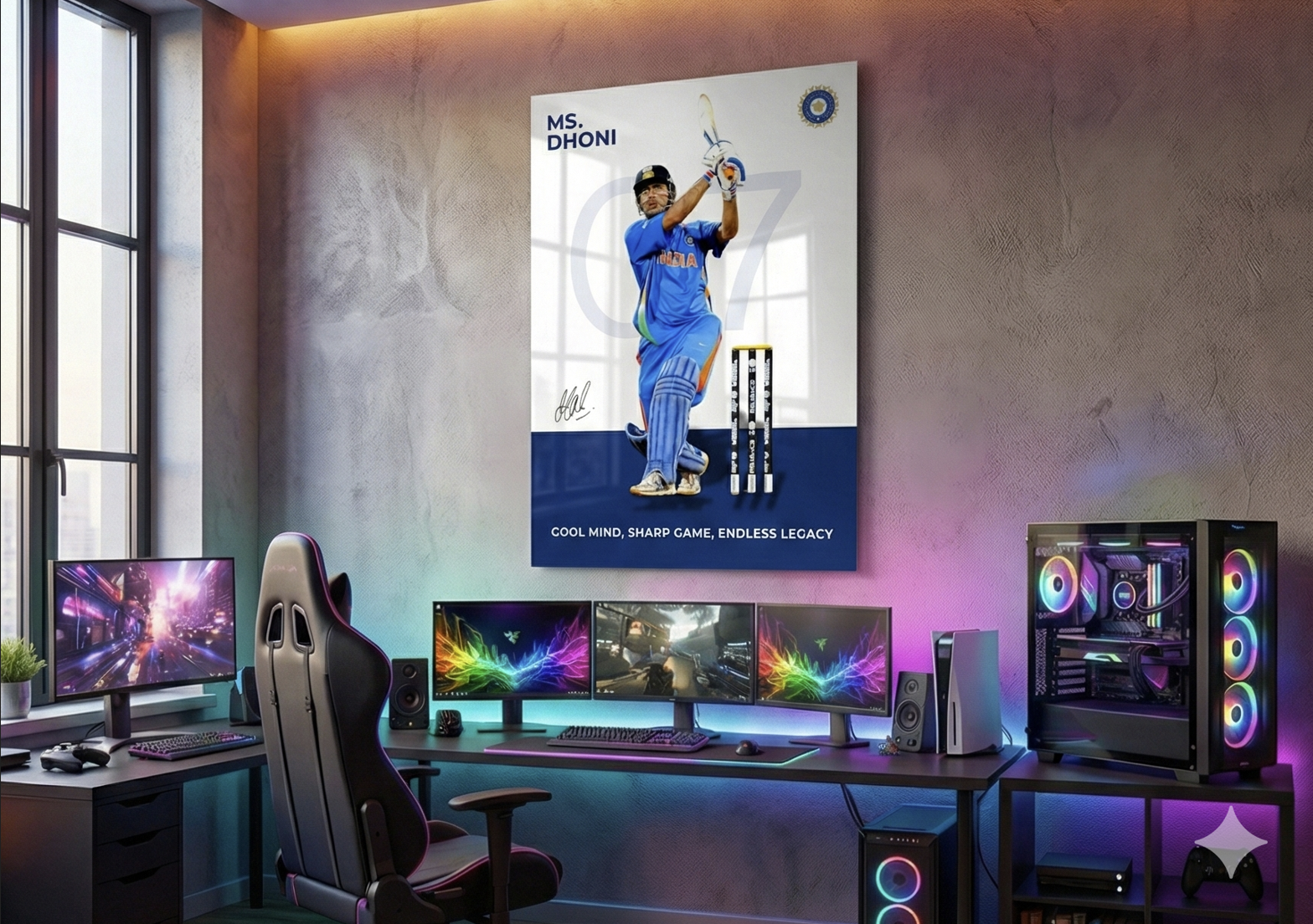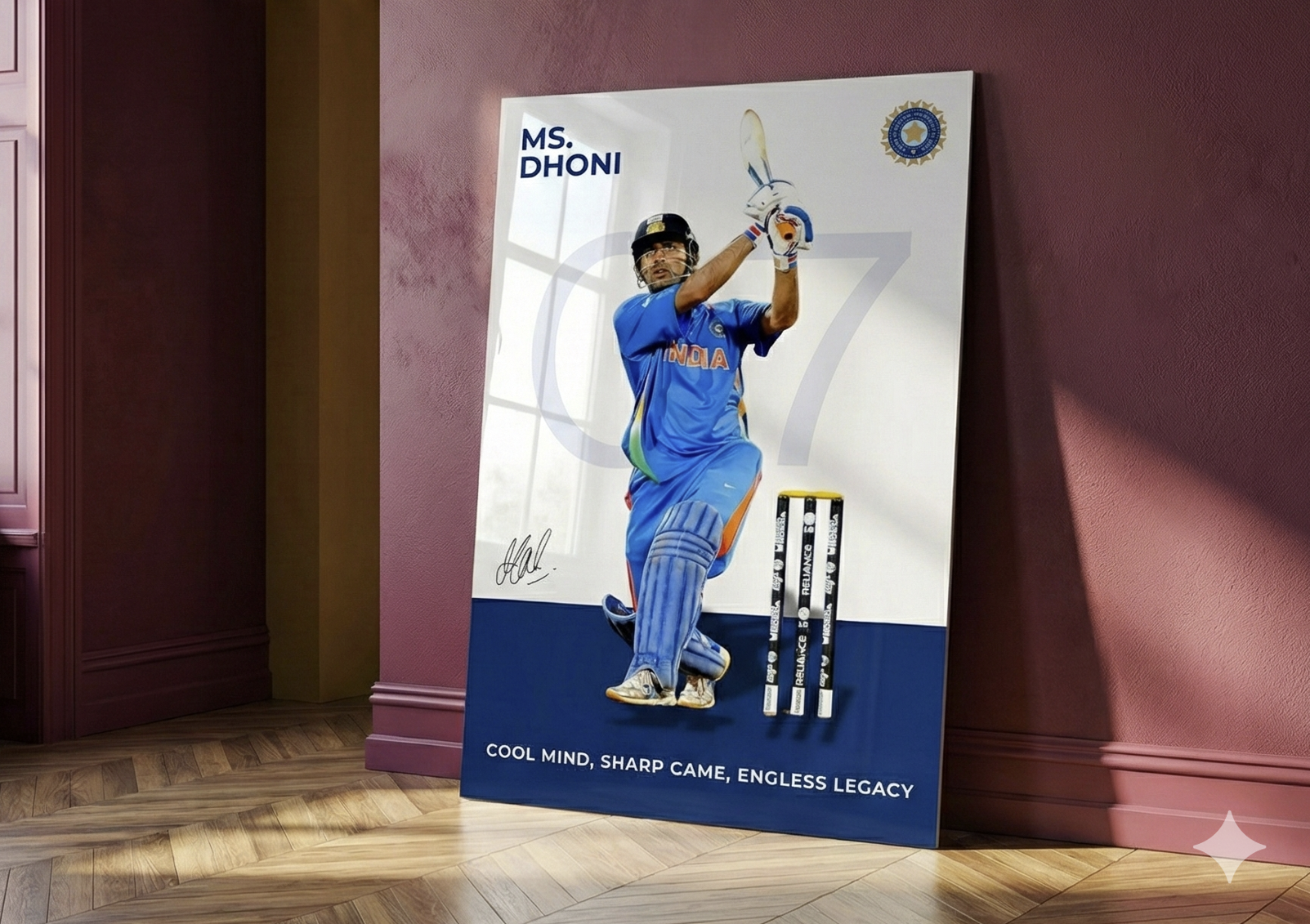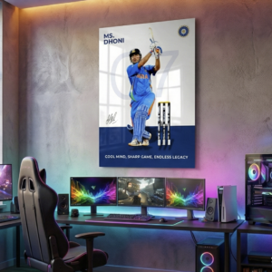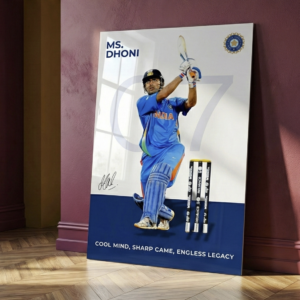 Celebrate the calm leadership and legendary finishing power of MS Dhoni with this premium 1mm metal poster. Capturing Dhoni in his classic batting stance with jersey number 07, this artwork is a tribute to composure, class, and an unmatched legacy in world cricket.