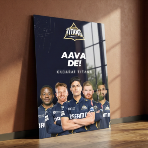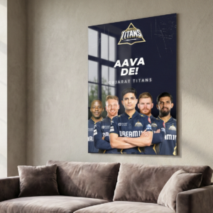 Celebrate the power and confidence of Gujarat Titans with this bold “Aava De!” metal poster. Featuring the Titans’ star squad in their iconic dark-blue and gold theme, this artwork captures leadership, unity, and championship attitude—perfect for true GT supporters.