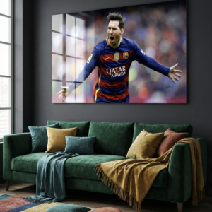 Features Messi’s legendary #10 jersey and celebration pose — a symbol of football excellence.