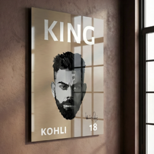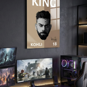 Celebrate the legacy of Virat Kohli with this stunning minimalist portrait metal poster. Designed with a modern dual-tone palette and sharp geometric illustration, this artwork reflects Kohli’s focus, intensity, and leadership—earning him the title “King”.