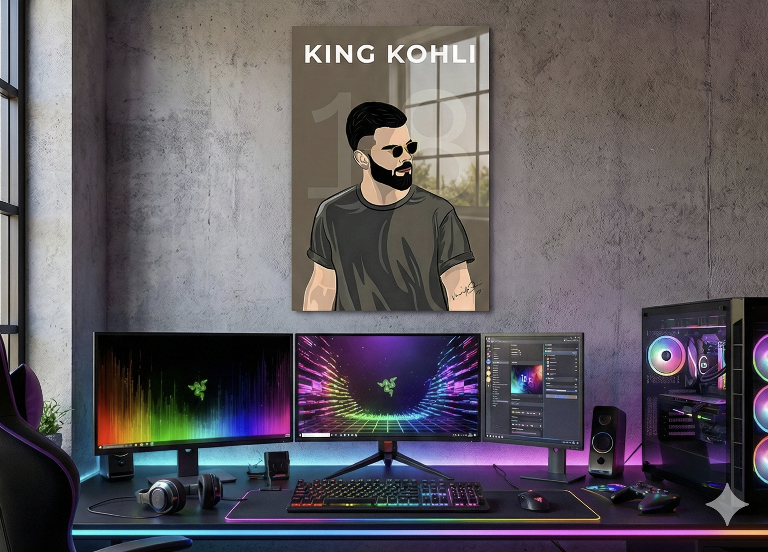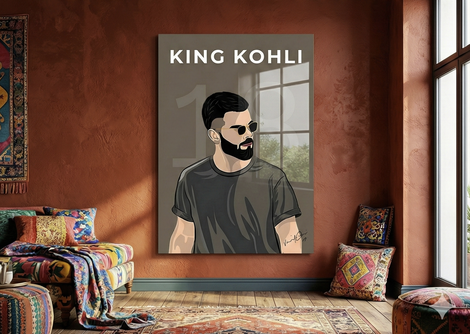 A sharp, modern vector-style artwork capturing Kohli’s fearless personality and superstar aura. -