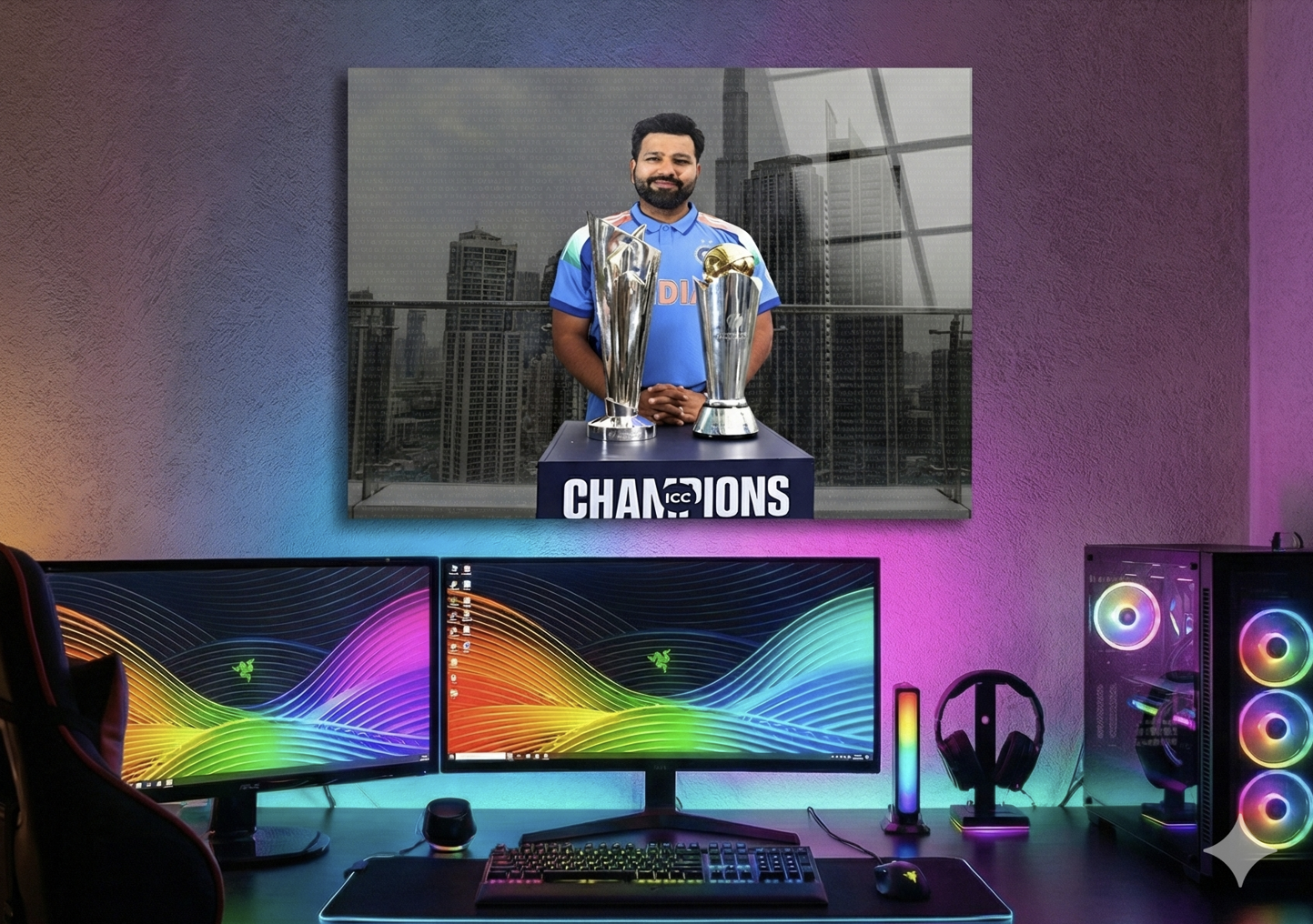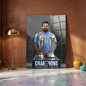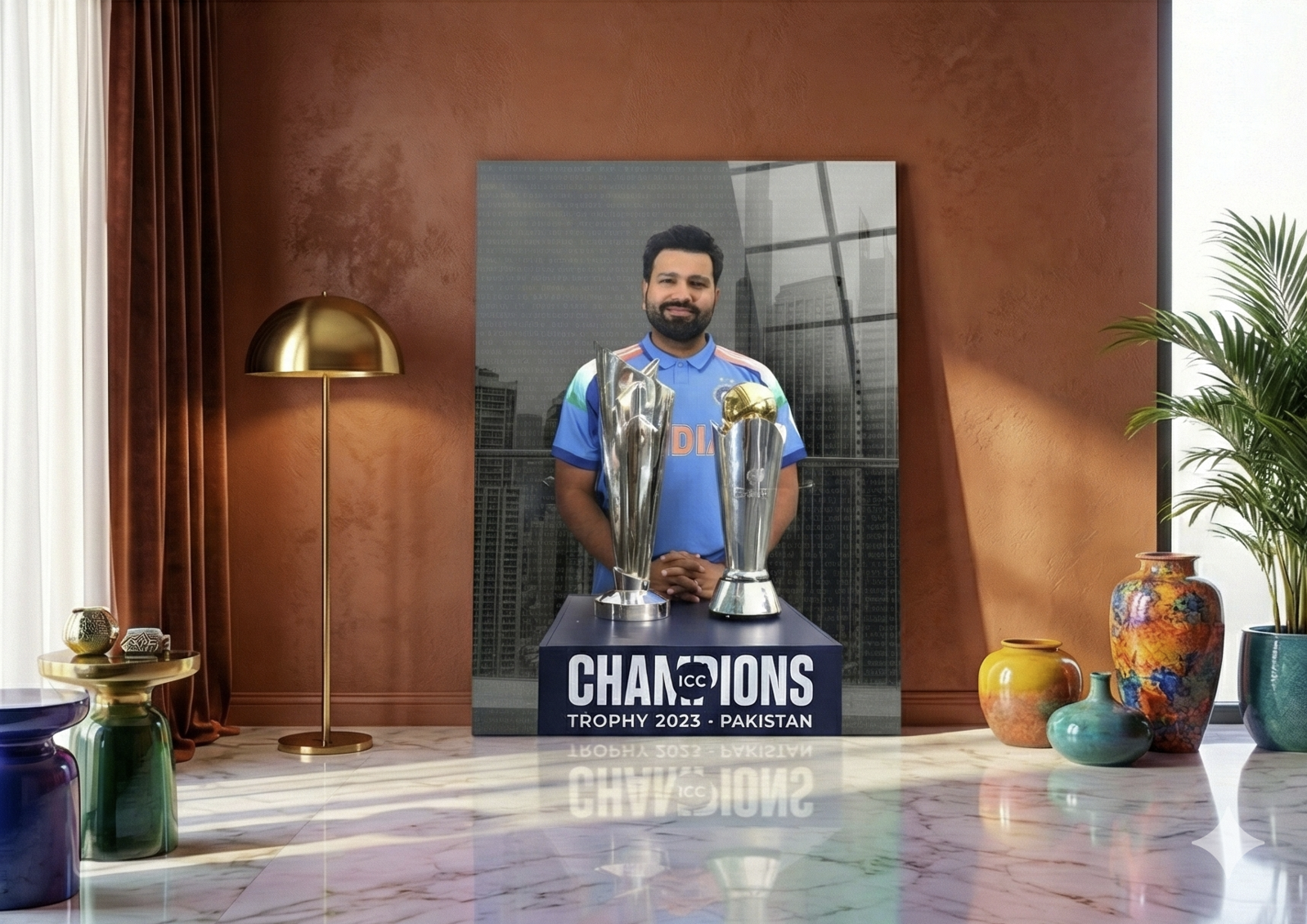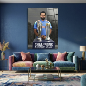 Celebrate leadership, legacy, and championship excellence with this premium metal poster featuring Rohit Sharma holding the prestigious ICC trophies. This powerful artwork captures the pride of Indian cricket and the calm authority of a true champion—perfect for fans who admire success at the highest level.